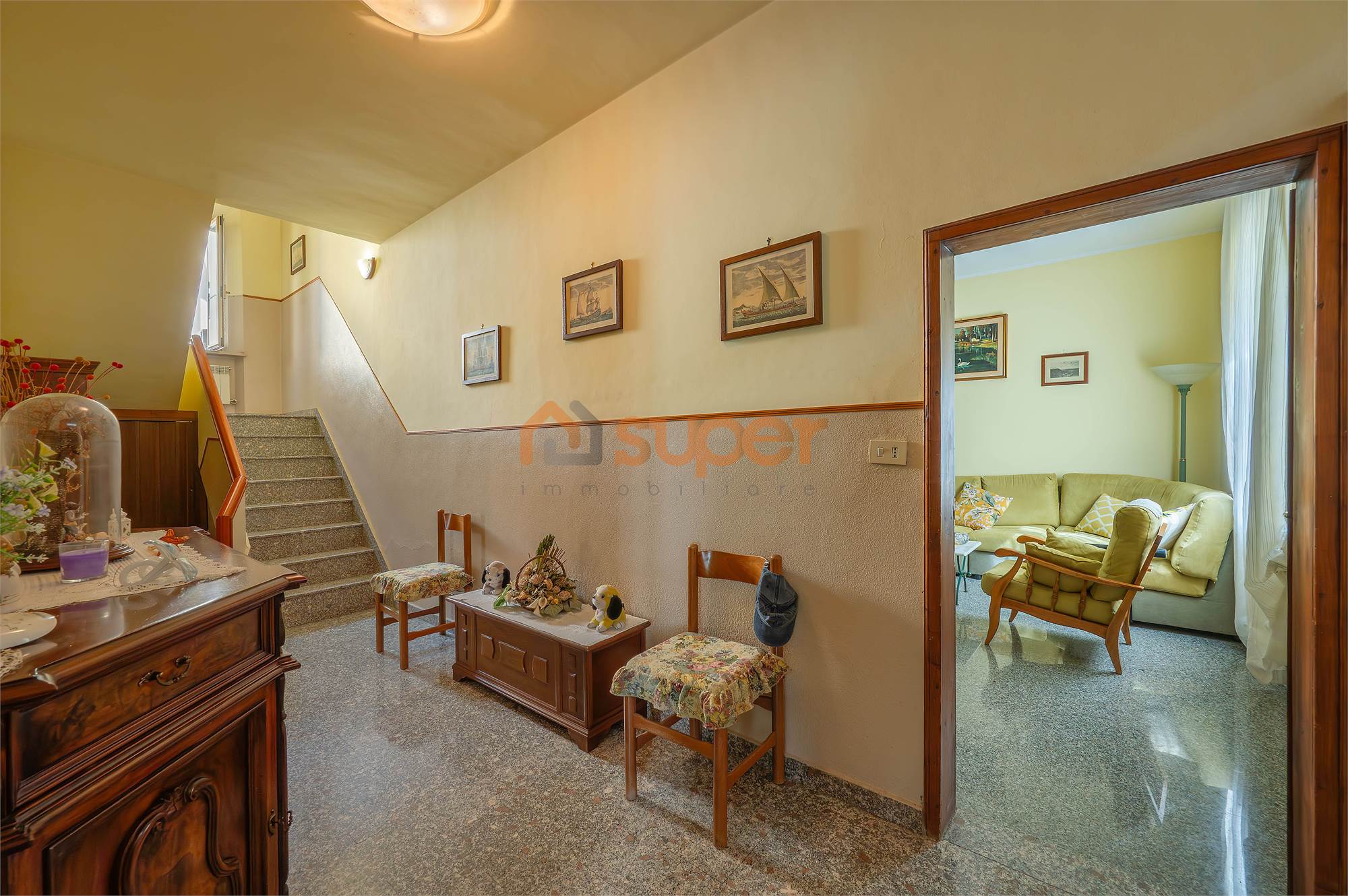 L’abitazione, caratterizzata da ambienti ariosi e ben distribuiti, si sviluppa su più livelli. Al piano terra troviamo un accogliente soggiorno, una cucina abitabile, due camere matrimoniali, un bagno finestrato con doccia e una comoda lavanderia.