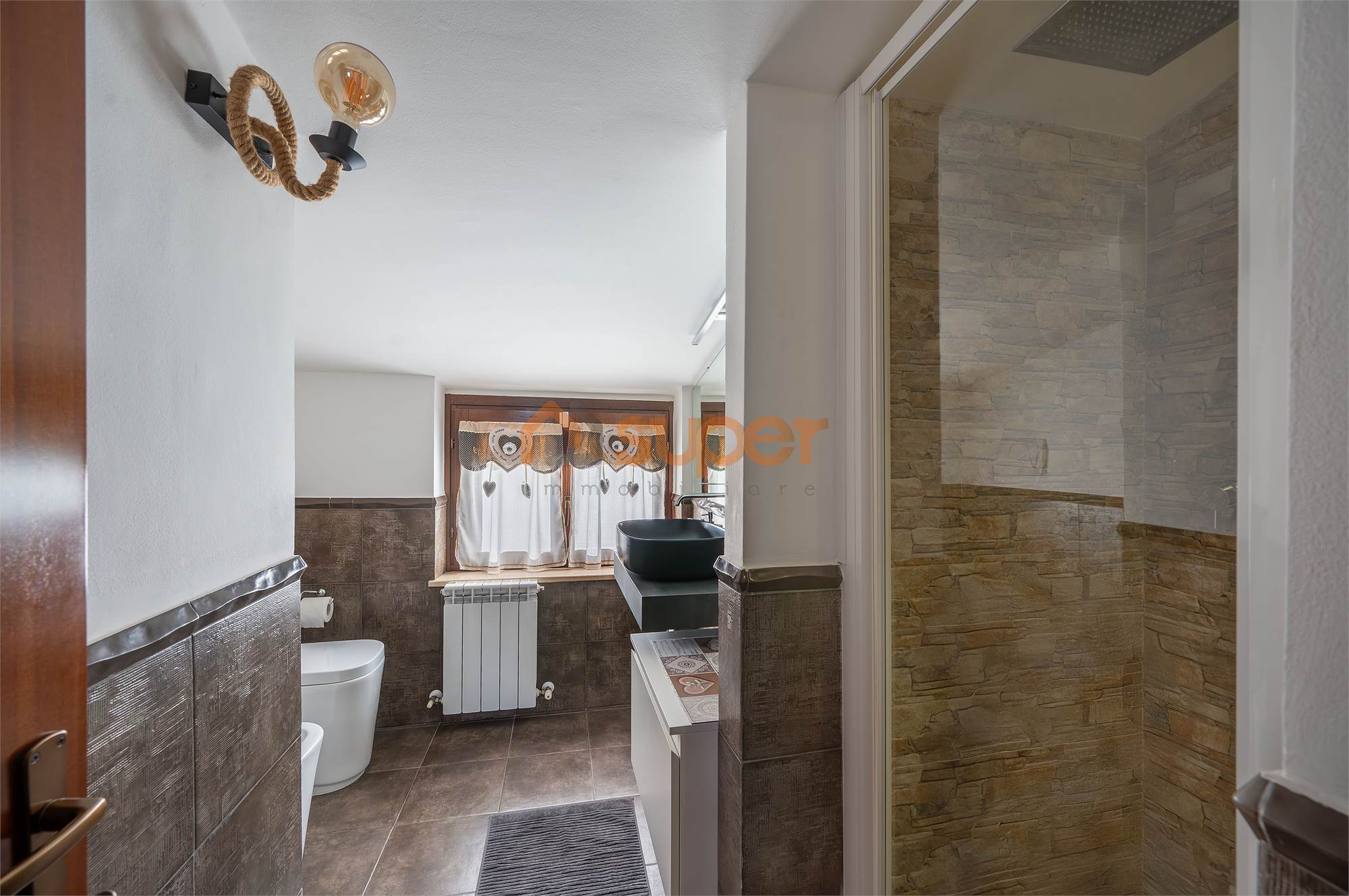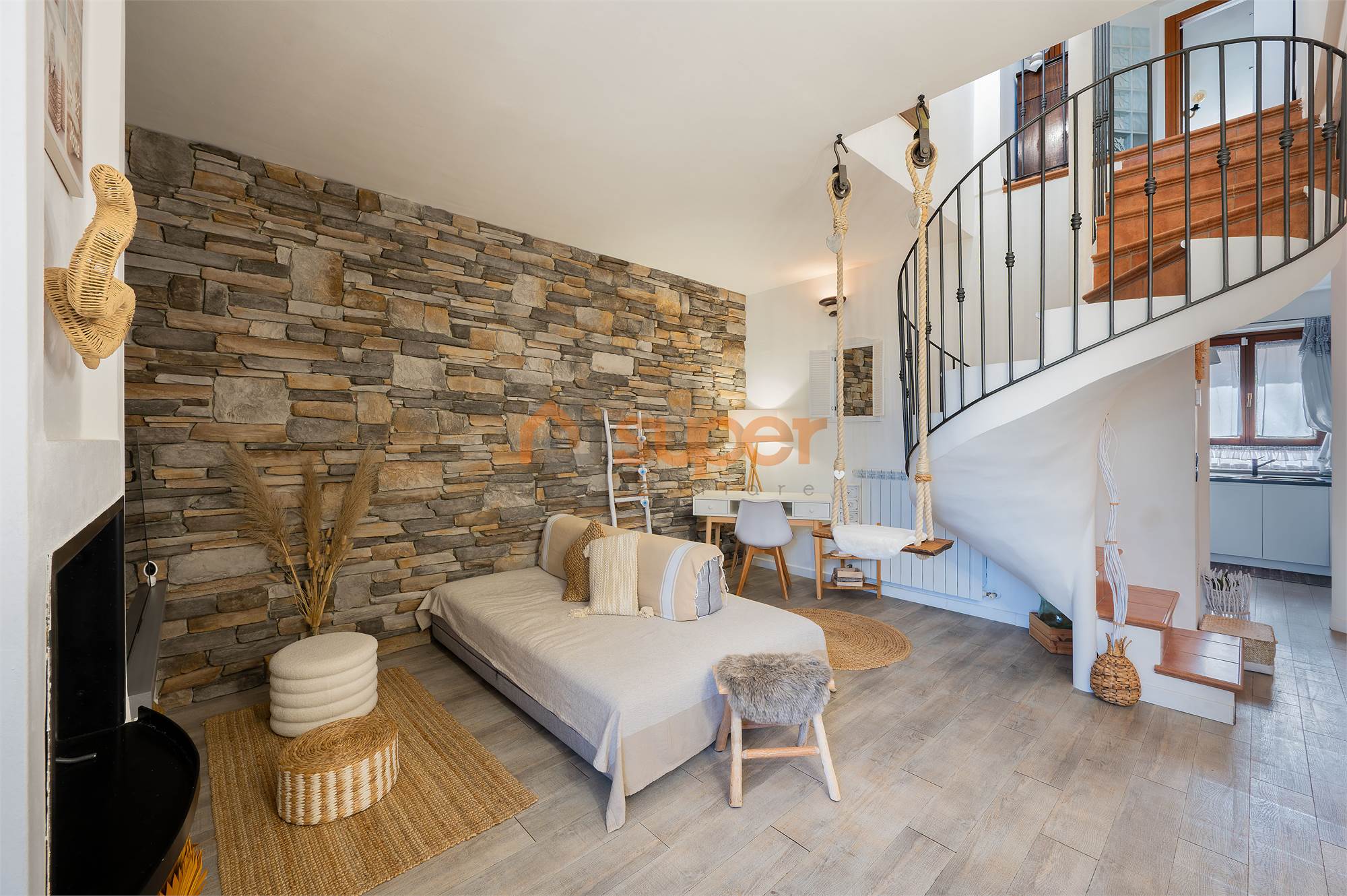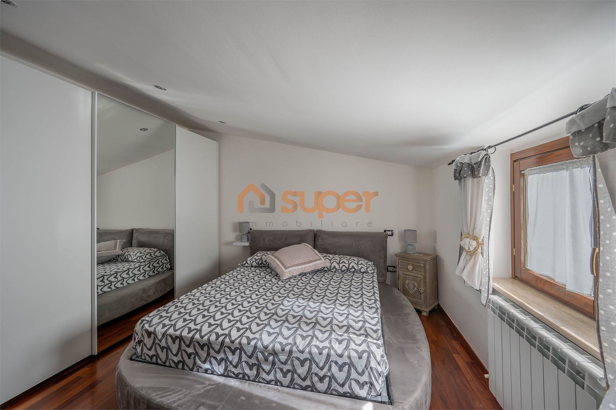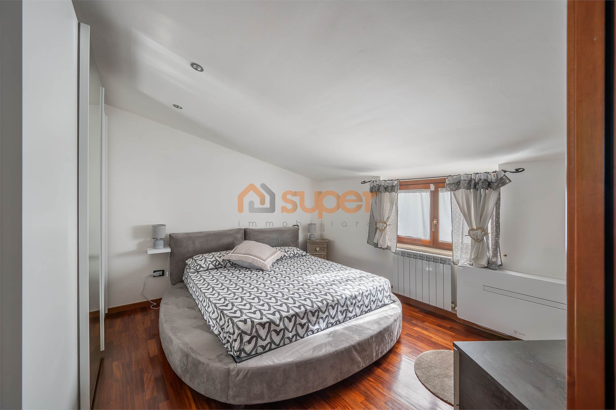 Una scala interna accompagna al secondo piano, dedicato alla zona notte, dove si trova una camera matrimoniale finemente decorata, caratterizzata da un’atmosfera ricercata e confortevole. La seconda camera, attualmente adibita a cabina armadio, offre versatilità d’uso e ottime potenzialità. Il piano è servito da un bagno finestrato con doccia, moderno e ben rifinito.