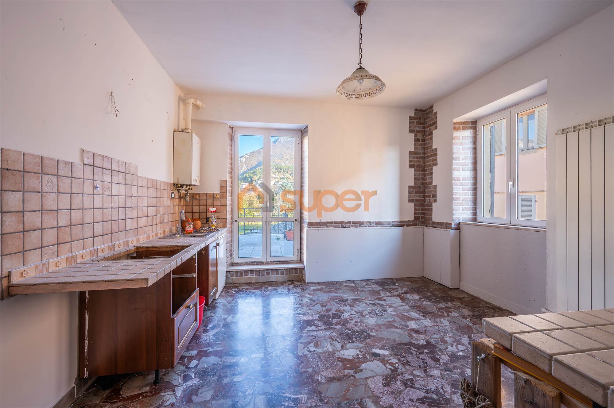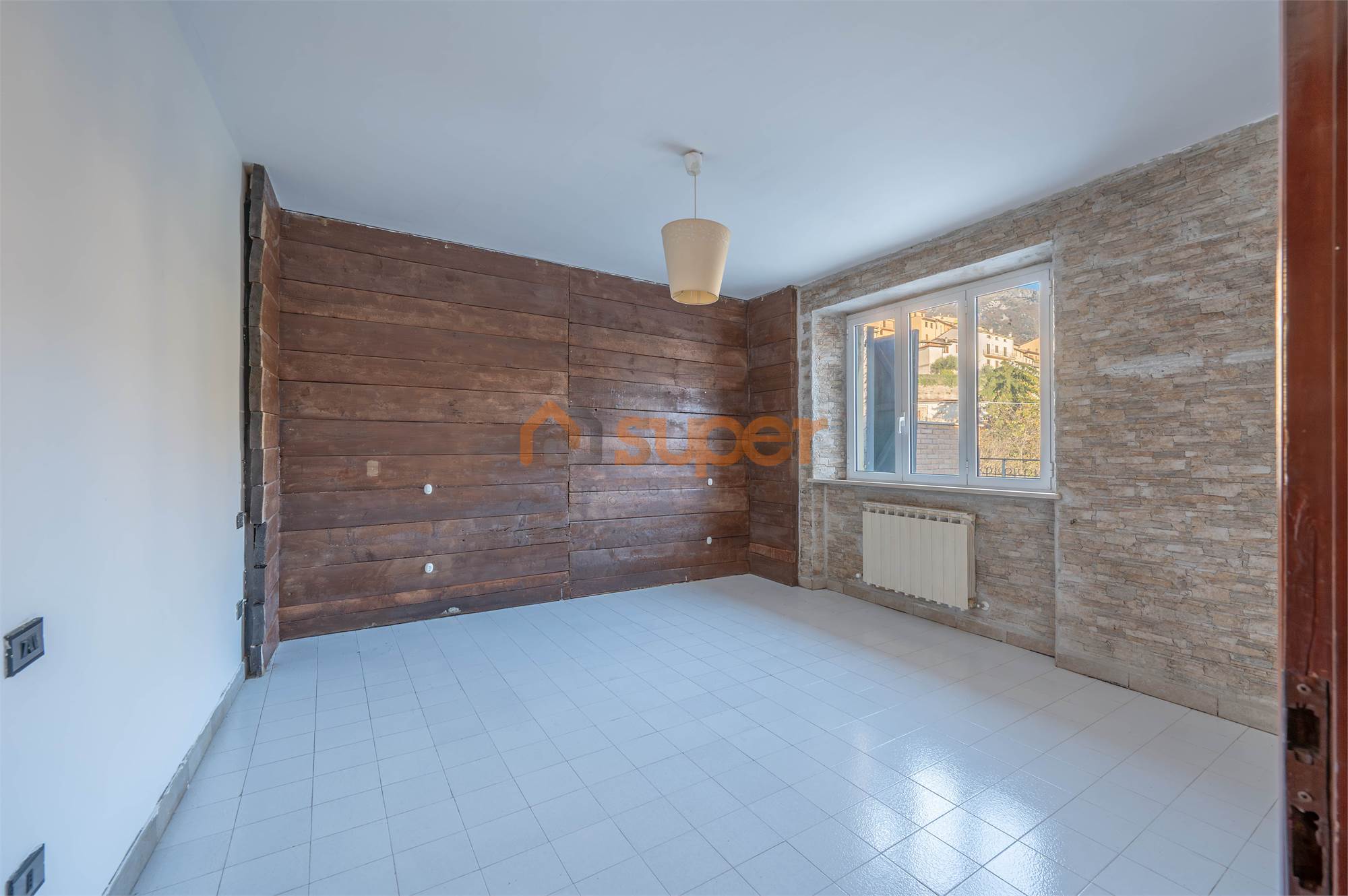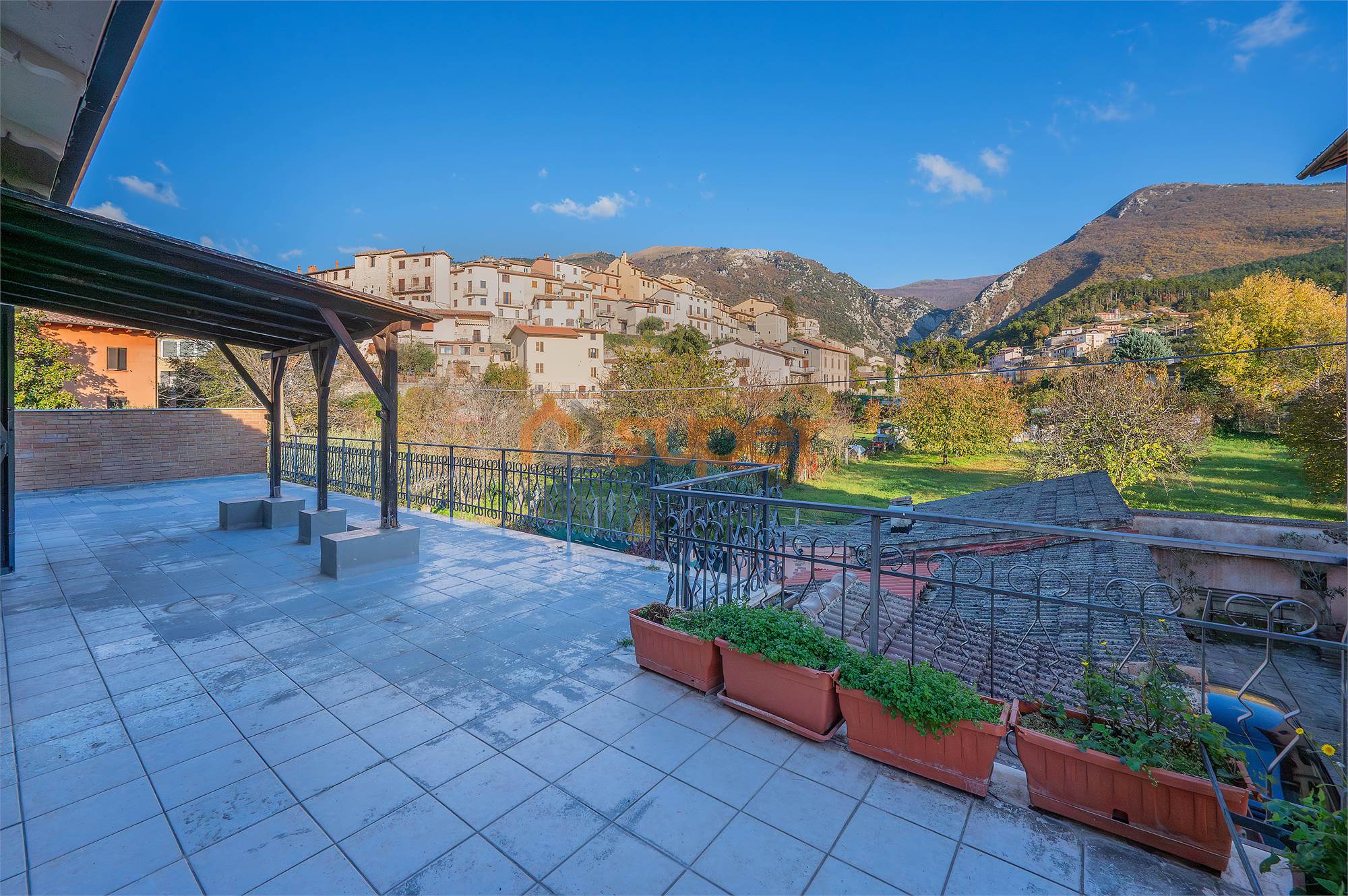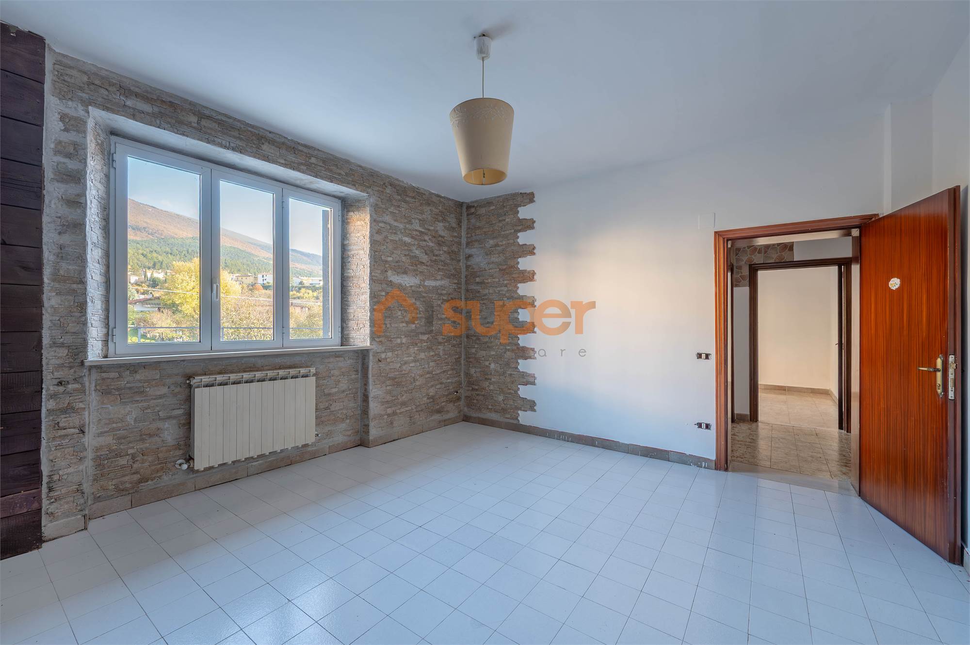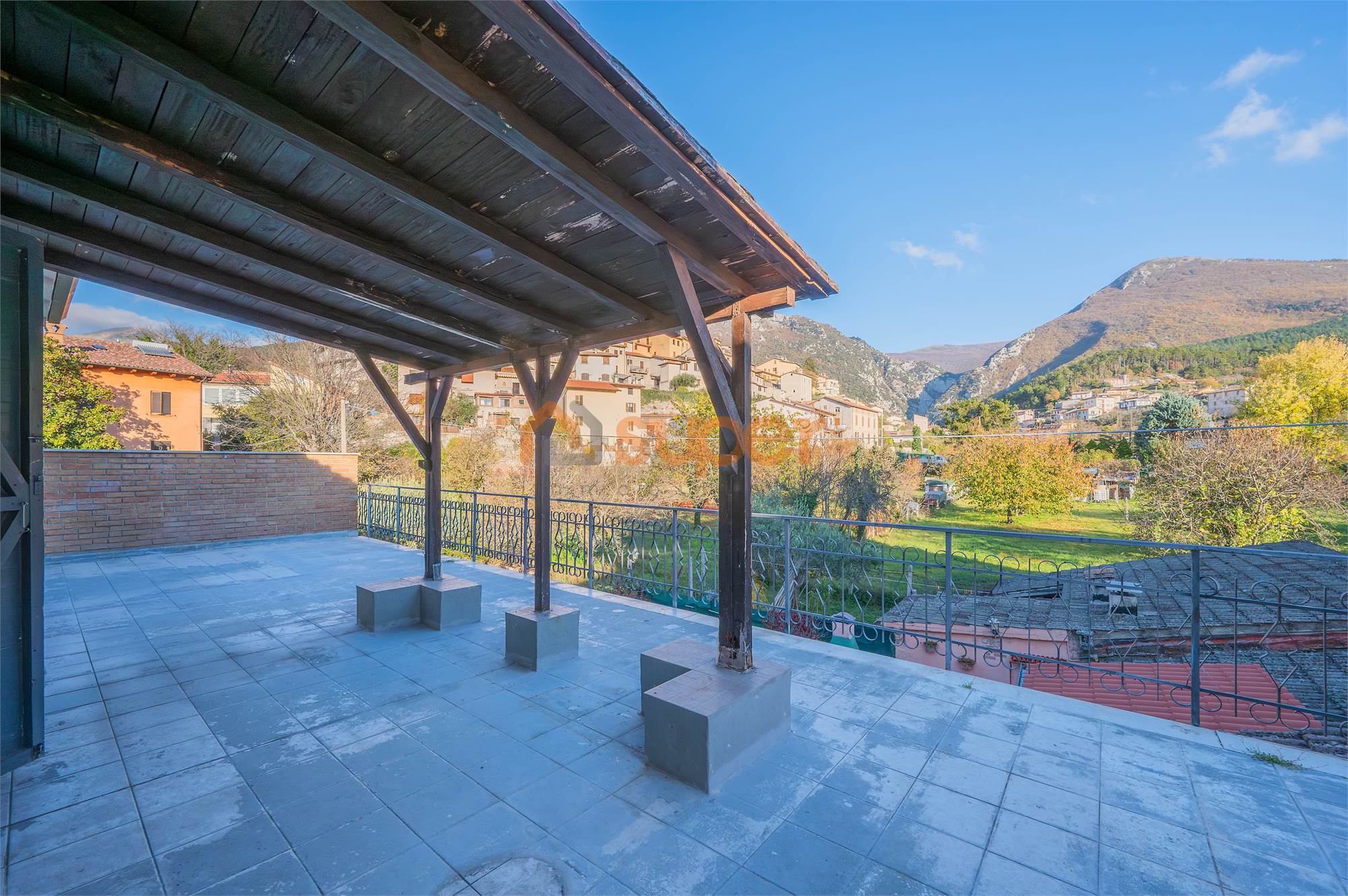 L’abitazione si distingue per gli ampi spazi interni ed è composta da un soggiorno doppio particolarmente luminoso e da una cucina abitabile con accesso diretto al grande terrazzo di circa 60 m², ideale per vivere l’esterno e godere della suggestiva vista sul Monte di Val Sorda. La zona notte comprende tre camere matrimoniali e un bagno.