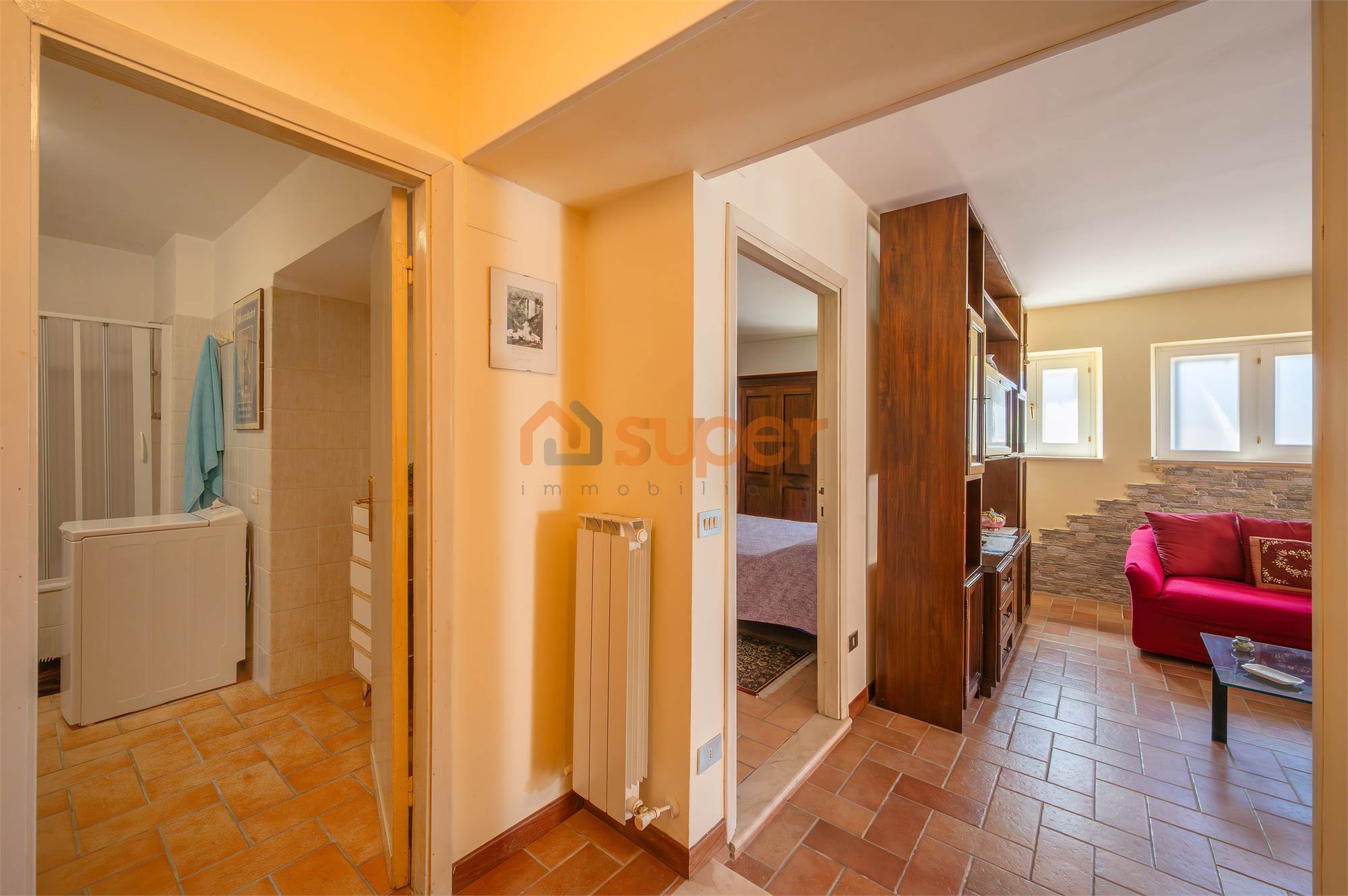 All'interno, la zona giorno si presenta luminosa e ben organizzata, con angolo cottura funzionale e spazi perfetti per vivere momenti conviviali. La camera matrimoniale, ampia e ben illuminata, accoglie comodamente un grande armadio e gode di un'atmosfera calda e accogliente grazie alla pavimentazione in cotto. un pratico ripostiglio permette di mantenere la casa sempre ordinata, mentre il bagno, cieco, completo di tutto, offre comfort e praticità. Persiane in alluminio coibentate di ultima generazione.